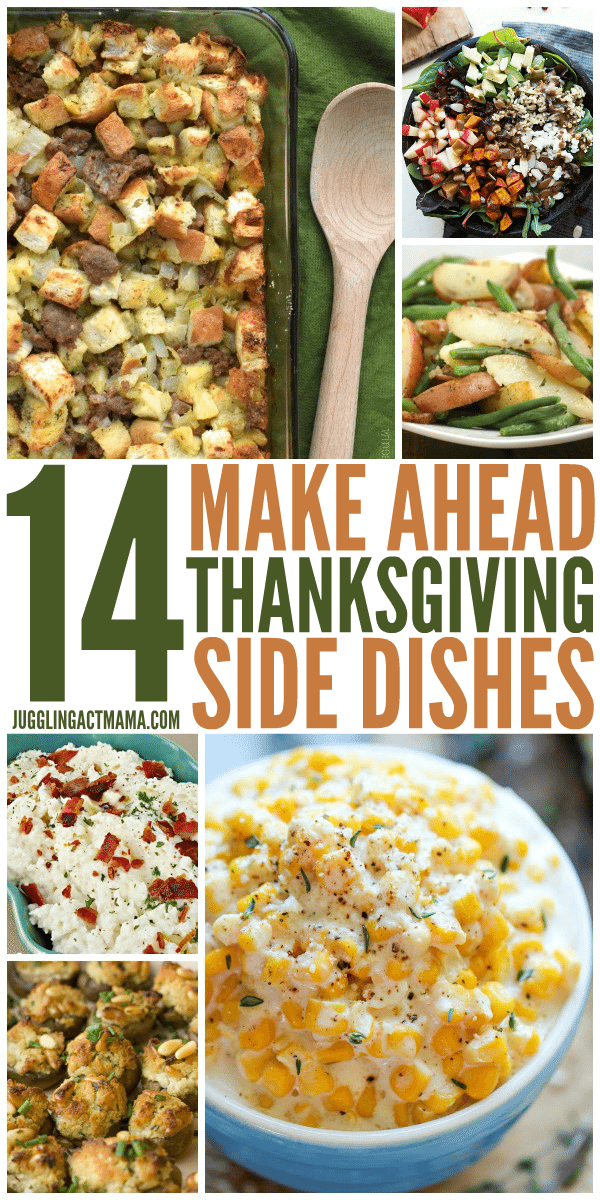 Prepping or making side dishes a day or two before Thanksgiving is a huge time saver. Roasted and mashed vegetables are great for making ahead because they reheat easily. Here are some common dishes that are easy to make ahead of time: