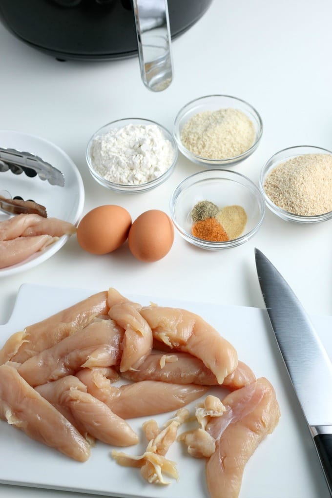 These Air Fryer Chicken Tenders are kid-approved and great for picky eaters! Frozen tenders can get expensive quickly, but you can make these easy chicken tenders using ingredients you may already have on hand! This recipe is perfect for using leftover chicken or breadcrumbs too!