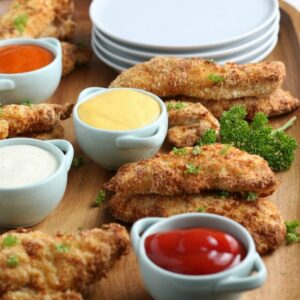 You only need eight ingredients to make these easy Air Fryer Chicken Tenders, and you can dip them in whatever sauce you’d like! In less than 15 minutes, you have a fantastic dinner to feed your family!