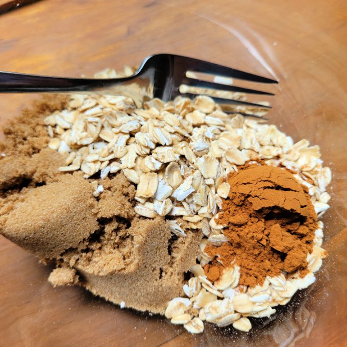 ⅔ cup rolled oats, ⅓ cup brown sugar, 1 teaspoon ground cinnamon