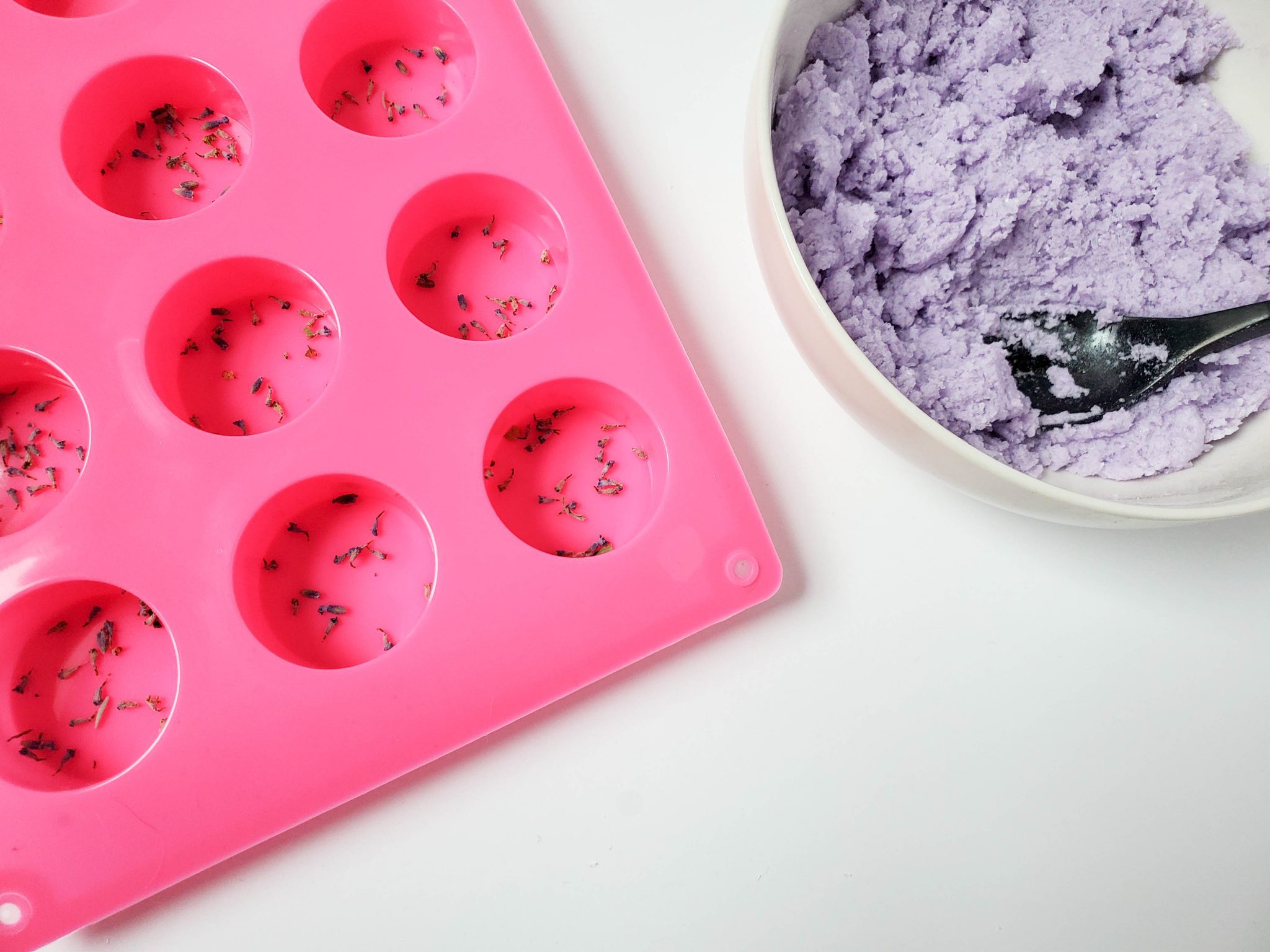 Our tutorial will show you how to make your own lavender shower steamers. This mixture will make 9 steamers.
