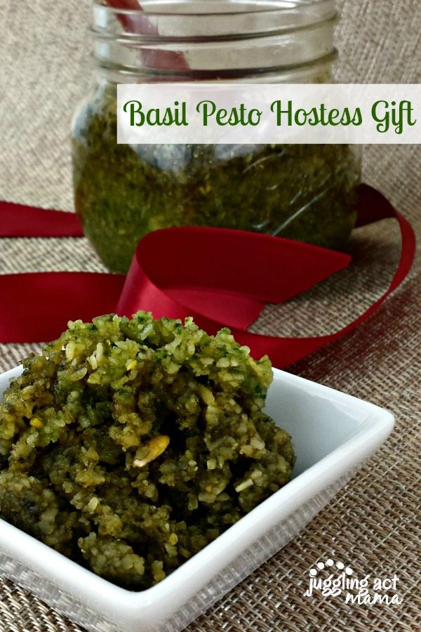 Pick up a loaf of freshly baked French bread, a bottle of wine and gift your hostess (or host) with a jar of this delicious Italian pesto to accompany it. They'll be sure to thank you! Add a pretty ribbon and cute gift tag to really dress it up.