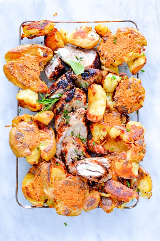 Once your pork has reached 145-degrees F, place it on a sheet of tinfoil. Add the herb butter on top and then wrap it up. Allow the meat to rest and the juices to redistribute through the meat before cutting.Nutrition