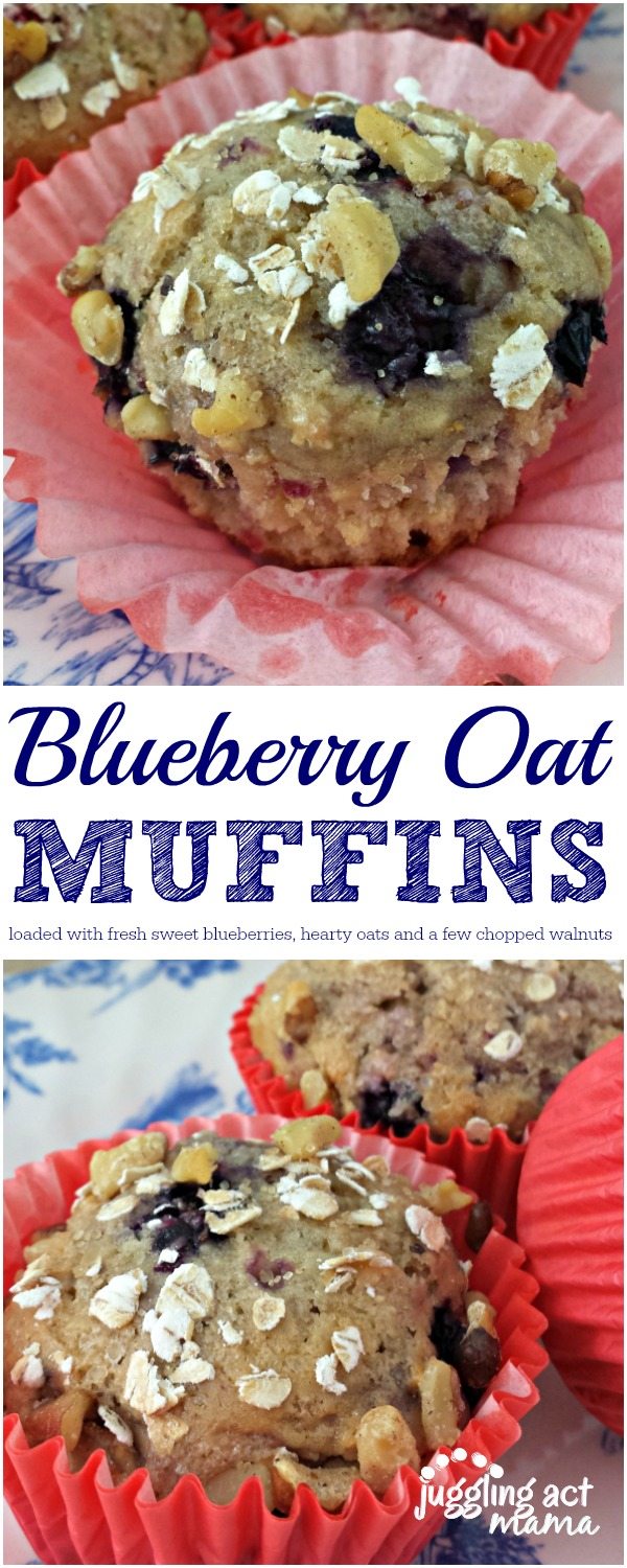 These Blueberry Oat Muffins are loaded with fresh sweet blueberries, hearty oats and sprinkled with toasted chopped walnuts for a delicious healthy breakfast on-the-go!