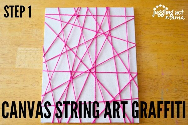 - You could add puffy foam stickers to the canvas after the strings are all in place. Wait until the paint is completely dry before removing the stickers. This is particularly fun if you are hanging it in a room with a fun theme like dinosaurs or unicorns. (These stickers can be found at most craft stores).