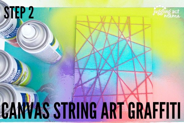 - Wear a mask, spray the canvas with different color spray paints.