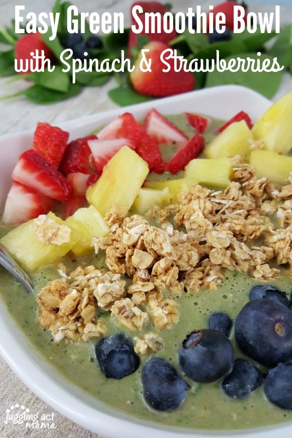 Easy Green Smoothie Bowl with Spinach & Strawberries