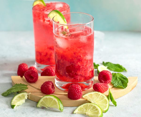 Raspberry Mojito - Juggling Act Mama: this raspberry and mint cocktail is made with rum and vodka.