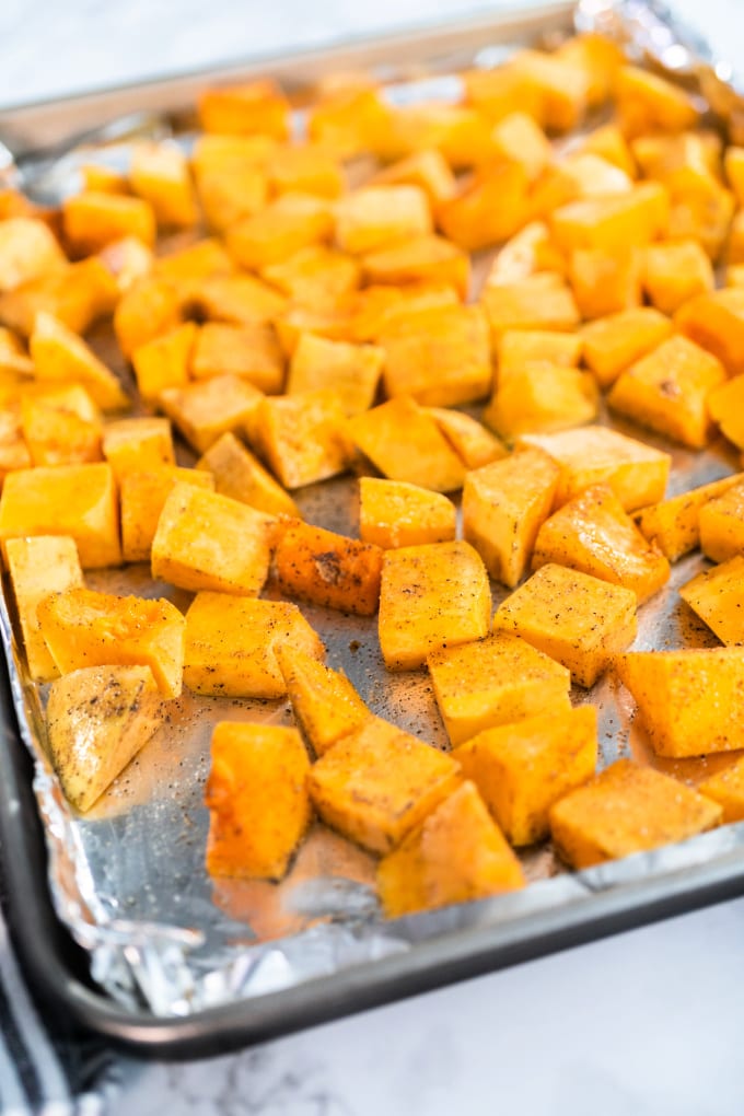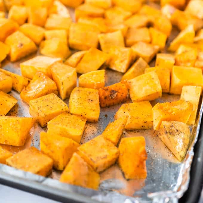 To Make Ahead: Butternut squash cubes can be cut a day ahead of time. Be sure to store your cut butternut squash in an airtight container in the fridge until you are ready to bake it. (These are my favorite airtight containers.)