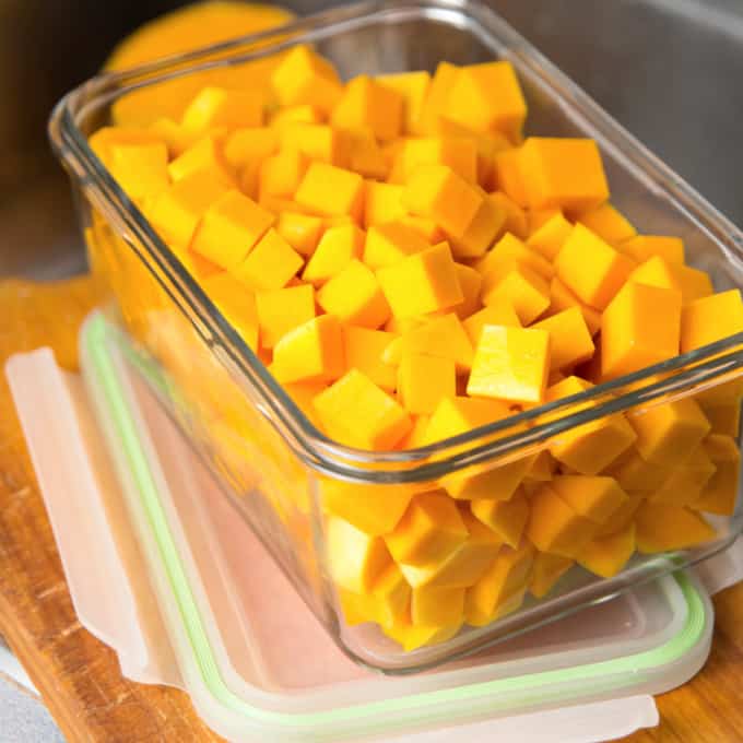 To Freeze: For best results, start by flash freezing the cooked butternut squash. Arrange the squash cubes on a baking sheet and place into the freezer for about 1 hour until frozen. Then, transfer the frozen squash to a freezer bag (be sure to label it!) Frozen squash will last about 3 months.