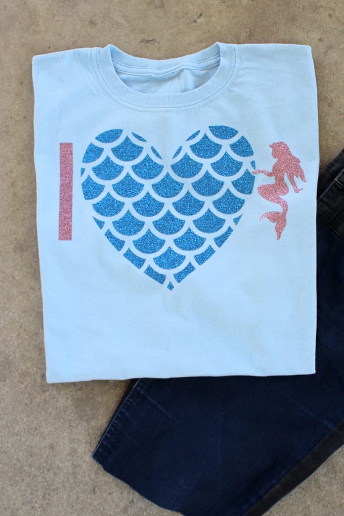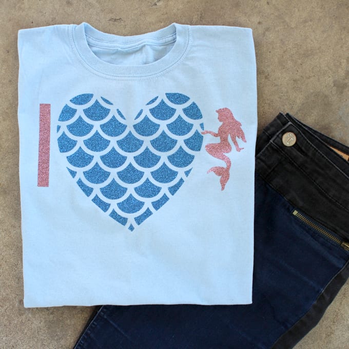 Make Your Own Cricut Iron-On Glitter Mermaid Shirt
