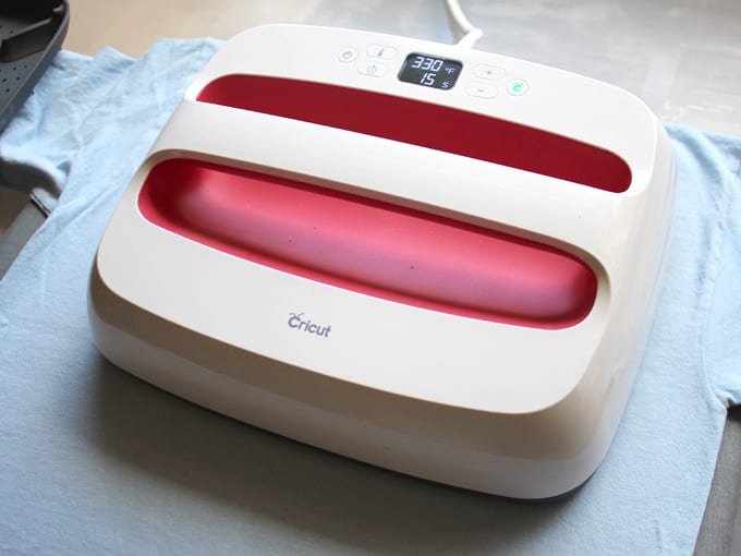 - Then place the EasyPress 2 on the shirt and press down firmly for 30 seconds.