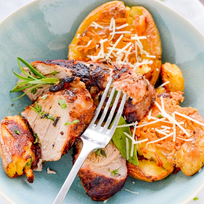 These potatoes are absolutely the perfect side dish for our Grilled Pork Tenderloin.