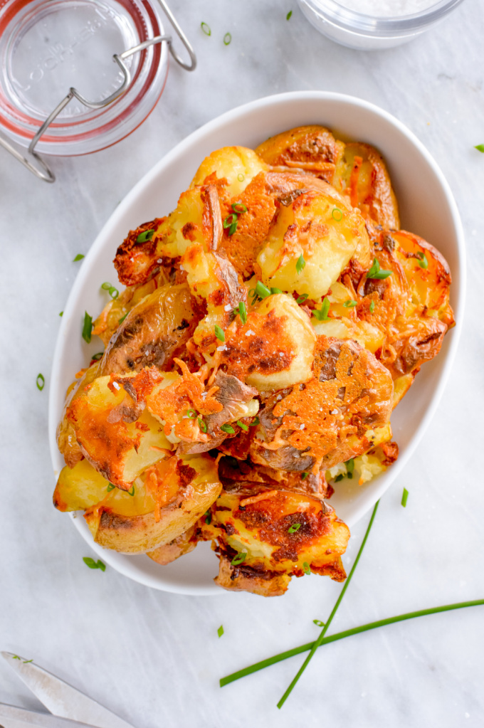 This smashed potato recipe is so cheesy and tasty; you’re going to want to serve it with every main dish. From grilled pork tenderloin or pork chops to steak bites or roasted chicken, a pan of potatoes as good as these will disappear. It's also a great side dish for petite sirloin or lemon pepper chicken.