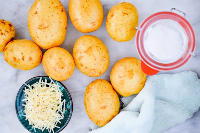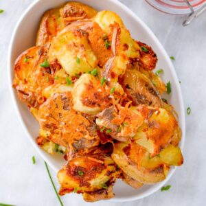I like to serve these with cowboy butter or basil garlic butter on the side because compound butter really adds a ton of delicious flavor to the crispy potatoes. However, you could also top these with sour cream, green onions, melted butter, a sprinkle of fresh herbs, or whatever else your heart desires!
