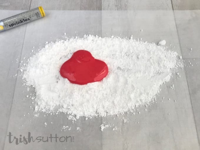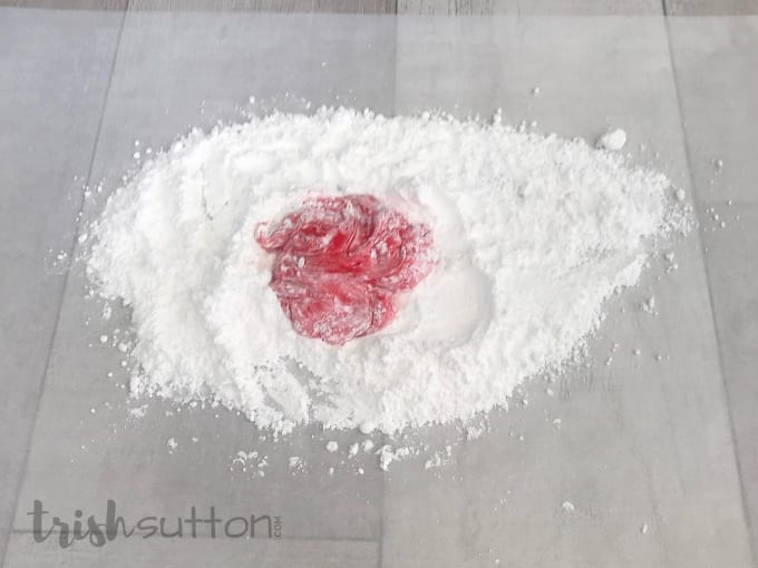 - Start by preparing a workspace by laying a sheet of parchment paper onto a flat surface. (A baking sheet, cutting board, craft board or even the kitchen counter would all work perfectly for this project.)3 Cups Powdered Sugar