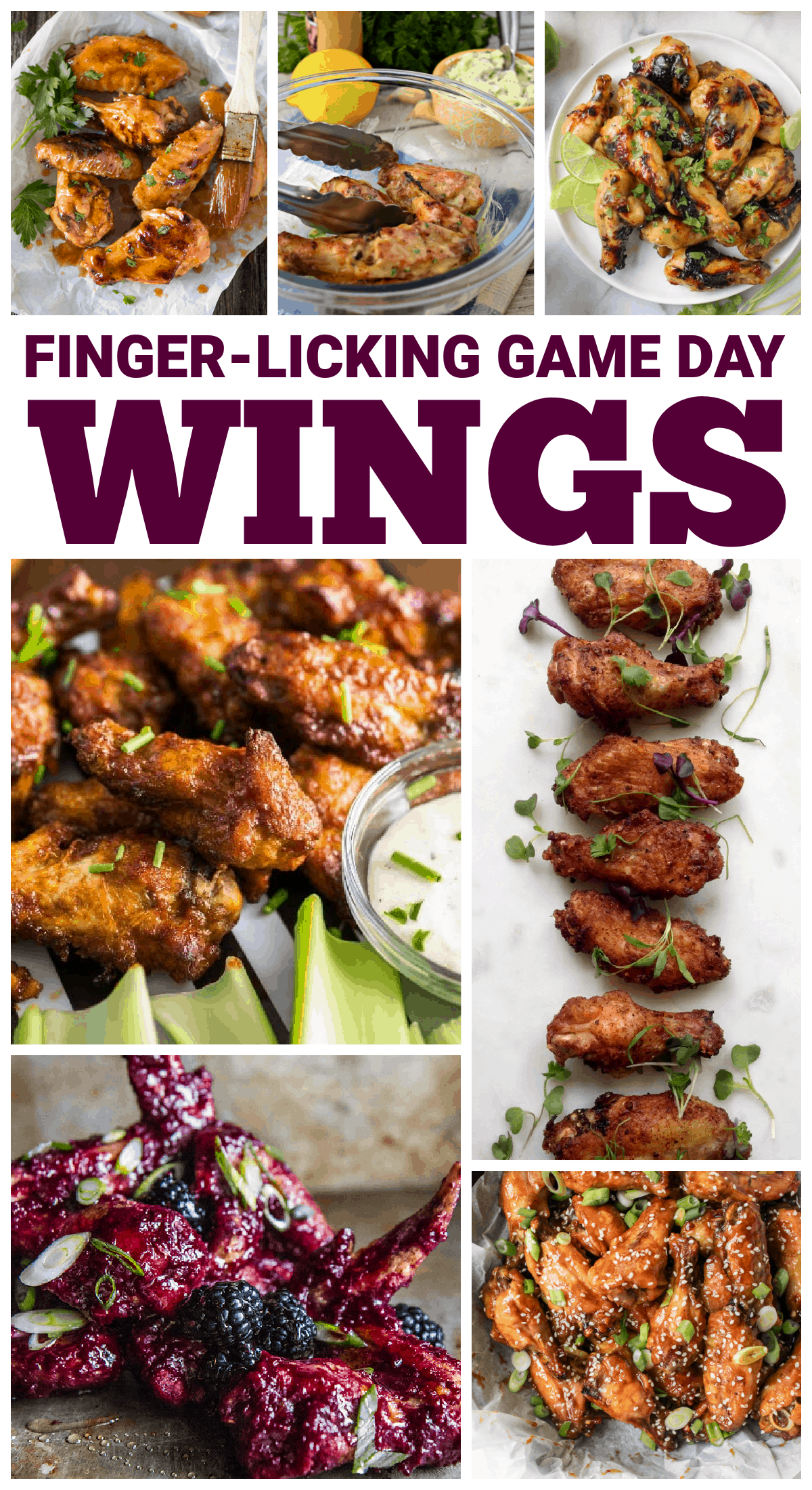 Collage of game day wings. Text reads Finger-licking Game Day Wings.