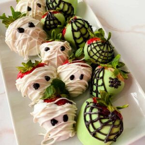 - These strawberry mummies and berry spiders offer a cute alternative to the spooky treats usually served during Halloween. They’re my go-to when hosting Halloween parties for young children.