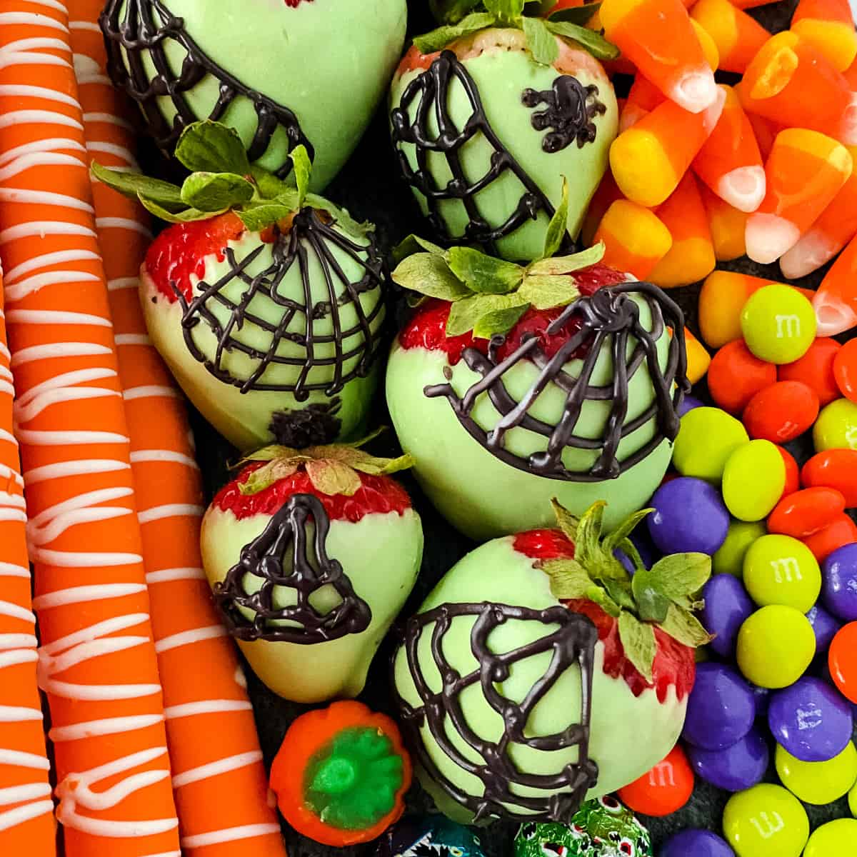 - These Halloween Chocolate Covered Strawberries make extremely festive and happy halloween inspired treats that are the perfect addition to your Halloween charcuterie board!