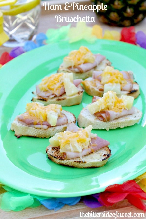 Anyways because I have been using my grill I have been trying to think of things to throw on it so I don't have to turn on the oven. That is how these Ham and Pineapple Bruschetta showed up on my plate.