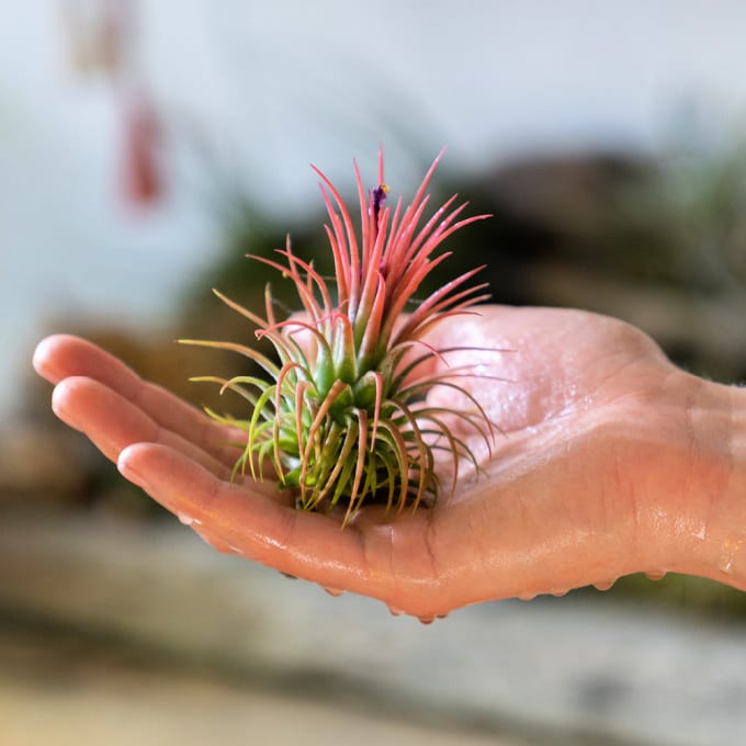 Keep in mind that many air plants should be allowed to completely try after watering, which can take several hours. You can use a light fan or breeze from an open window to help dry them.