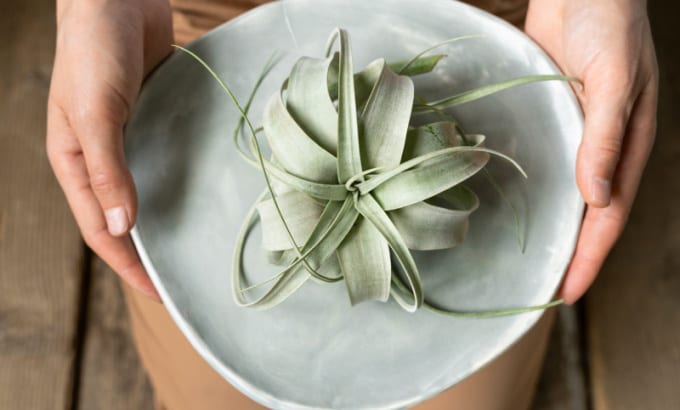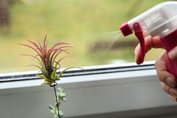 Air plants are unique in that they are one of the few plants that don’t need soil. However, because of this, they absorb their nutrients through the air and water. This means that you don’t want to dry out your plant, but too much water can cause it to rot. Use a spray bottle to keep it moisturized and submerge your water for a short time to water it properly.