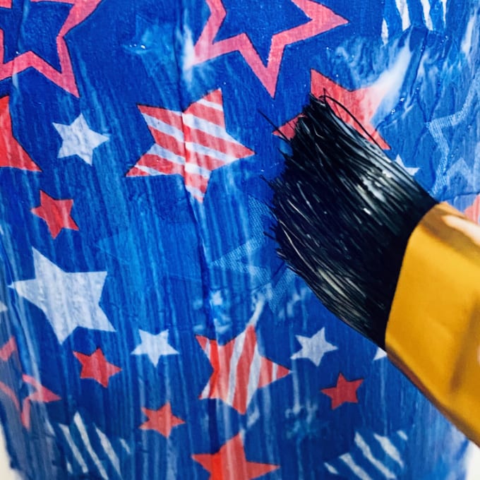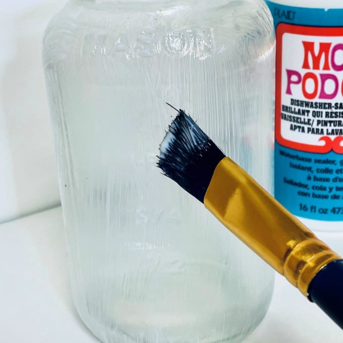 3. Once the napkin is on the jar, apply a thin coat of Mod Podge on top to seal it.