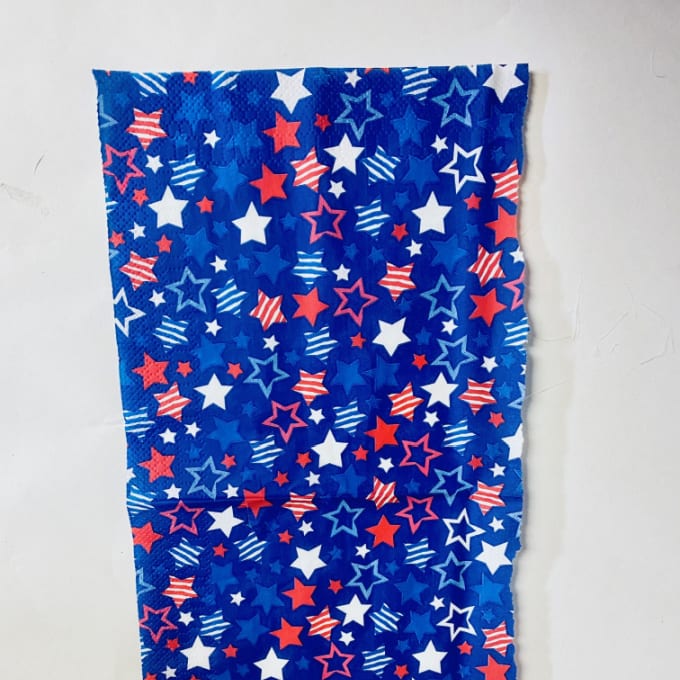1. Tear one of the napkins in half. Discard any plain second layer, you only need the top colorful part.