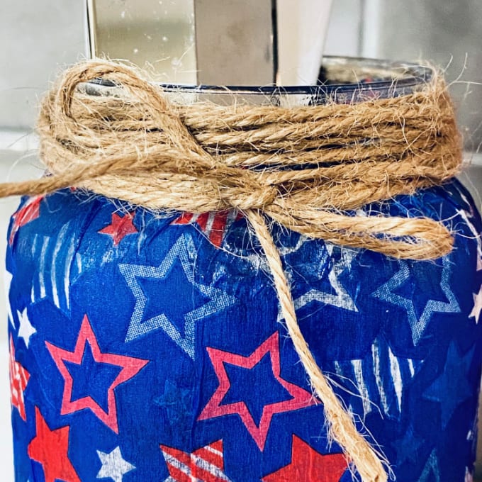 These patriotic jars are perfect for Memorial Day and the 4th of July but you can use these painting and decoupaging techniques to customize your own jars any way you like. From gender reveal or baby showers to birthday parties and weddings, the possibilities are really endless!