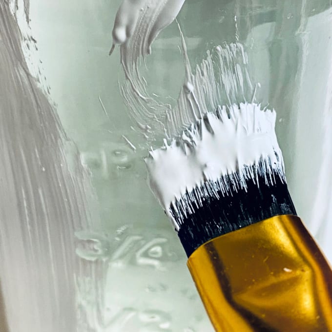 1. Apply 2 coats of Waverly White Chalk Paint to the outside of one jar using the paintbrush.