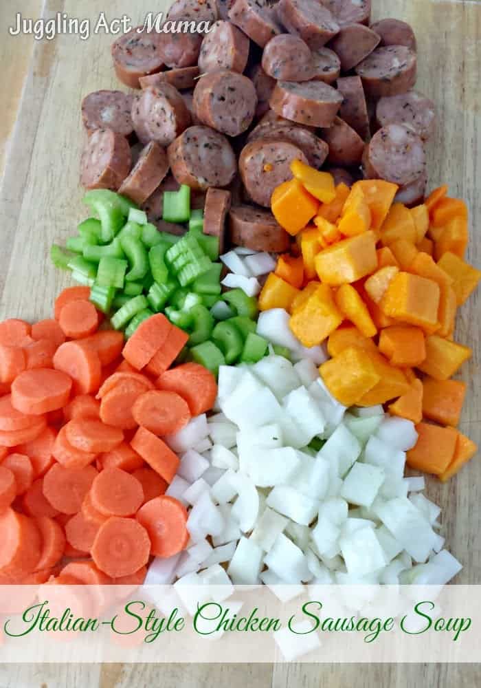 But, as someone who loves to play around in the kitchen, it was really fun to cook for a family with virtually no restrictions on what they would eat. I came up with this Italian Style Chicken Sausage Soup, which can be made in a flash on the stovetop, or can simmer away all day in slow cooker.