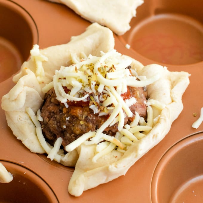 - Set a meatball inside each dough cup.8 meatballs