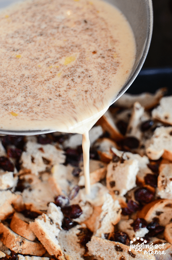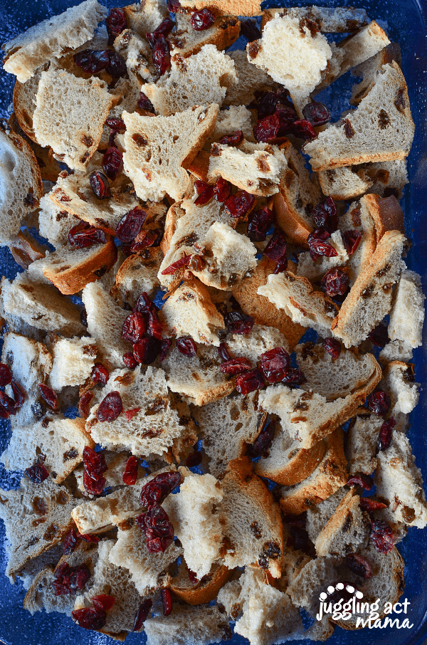 • Sprinkle the cranberries over the dried bread.