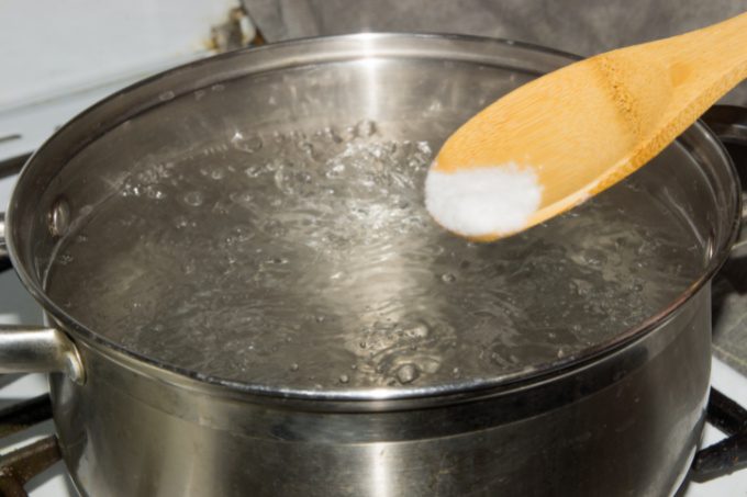 - Next, add the baking soda to a large pot of water. Bring the water to a boil.