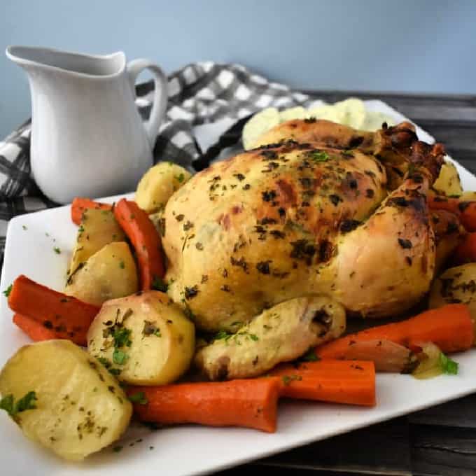 This is meant to be a brief overview of the Roasted Chicken and Vegetables Recipe. For step-by-step instructions and a full printable recipe card with ingredients, please scroll down to the teal box below or Jump to Recipe.