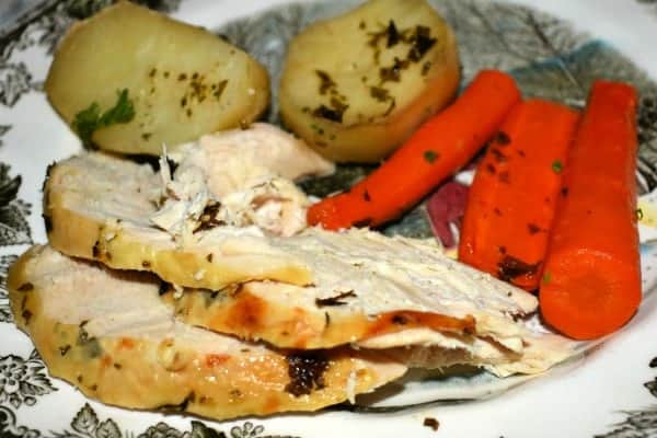 Since the root vegetables are cooked right along with the chicken, you don't need to add much else to your meal. My favorite thing to add is Maple Roasted Acorn Squash, but a light salad with Lemon Vinaigrette is good choice, too. Creamed Spinach or Steamed Broccoli are also tasty side dishes.