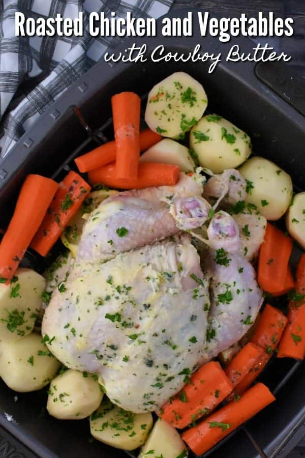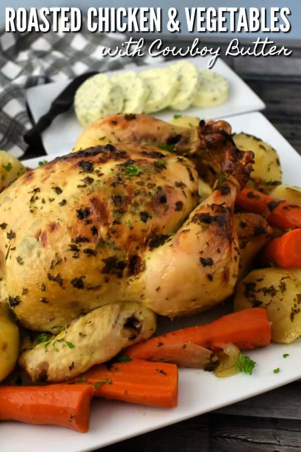 Our Roasted Chicken and Vegetables Recipe with garlic compound butter doesn't get more delicious - or easy - than this! Be sure to pin this one because you'll be making it again and again.