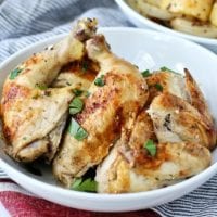 Now that it’s fall, and we are all turning our ovens back on, this sheet pan chicken and potatoes is a wonderful way to have everything ready to serve at the same time. You don’t have to worry about oven space either, as everything is in the same pan. Plus, the chicken is spatchcocked so that it cooks evenly and the breast meat does not get too dry.