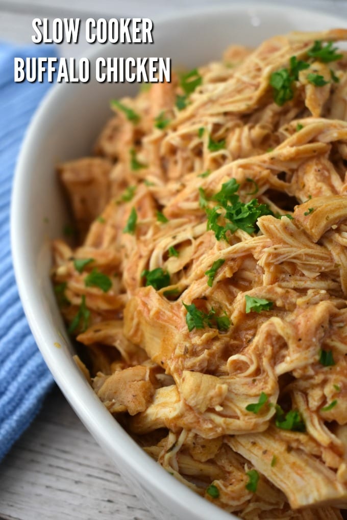 This slow cooker Buffalo chicken recipe is perfect to use as part of your weekly meal plan. This is not just for football season! It's so easy to make sandwiches and wraps, salads and much more with this recipe.