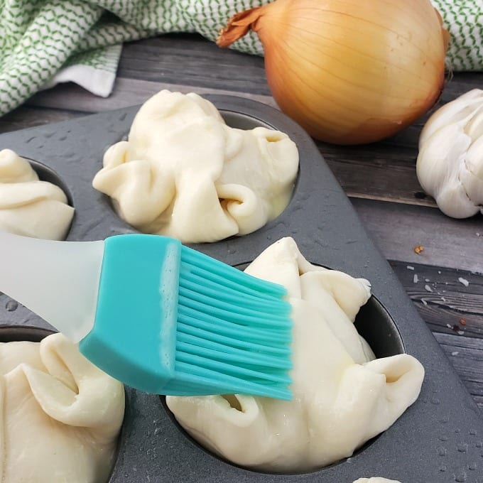 • Use a pastry brush to lightly brush each of the spinach puff pastry cups with the egg wash.
