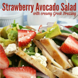 Strawberry picking is a family favorite every June, and I love coming up with ways to incorporate strawberries into fun new recipes. This salad is loaded with sweet strawberries, creamy avocado, grilled chicken, tangy feta, and loads of delicious mixed greens.