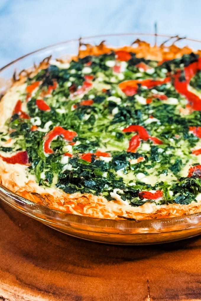 Allow the crustless spinach quiche to sit for a few minutes before slicing with a sharp knife.