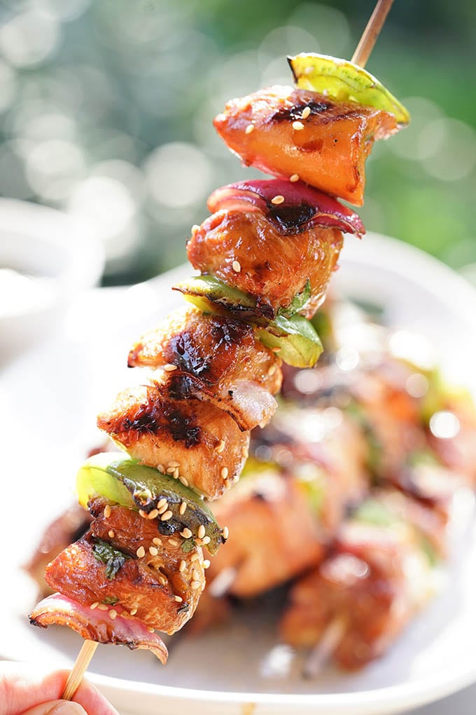It's so easy to customize these chicken skewers. You can add onions,