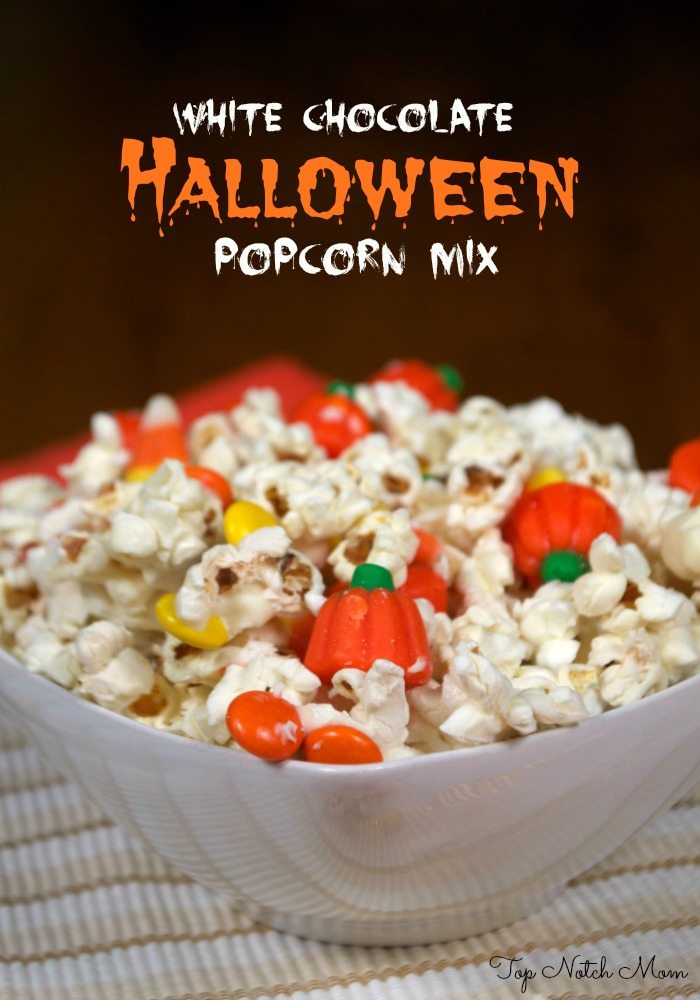 I just love this time of the year. The weather is starting to cool down and the stores are filled with fall and Halloween decorations. You can't help but get into the fall spirit with this white chocolate Halloween popcorn mix.