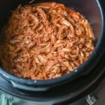 When the chicken is done cooking, carefully shred it using two forks. Alternatively, you can put it into a stand mixer with the paddle attachment to break up the meat.