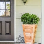 1. Start by measuring your plastic planter box. Then, use that dimension (ours was 14”) and add 4” to it. This is the dimension you’ll use for the long side of your top round of boards.