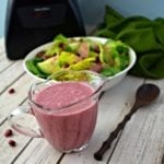 To make Pomegranate Vinaigrette, add all the pomegranate, extra virgin olive oil, maple syrup, red wine vinegar and dijon mustard into a high-powered blender such as a Blendtec.